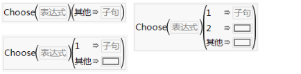 Choose 是 Match 的特殊形式,其中条件的参数为从 1 开始的一系列整数。子句的值替换匹配条件。图 A.6中显示了 Choose 条件的示例。使用 Choose,“公式编辑器”直接转到正确的选择子句并对结果表达式求值。