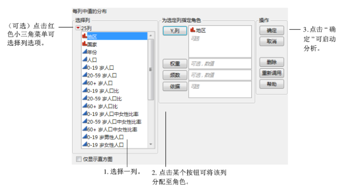 启动窗口是您进入平台的入口点,您可在其中指定要分析的列。图 2.2显示“分布”启动窗口。