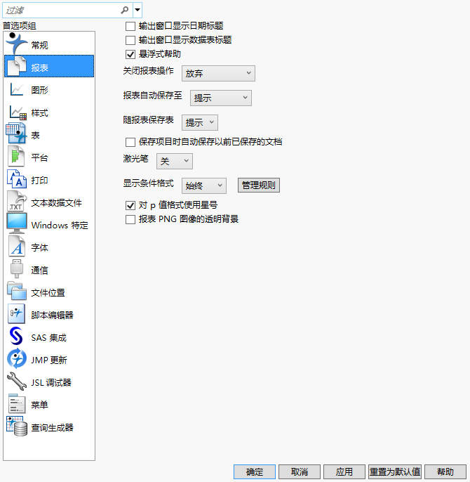 图 13.2 “报表”首选项