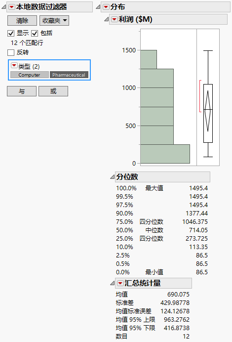 图 9.4 显示医药公司利润的本地数据过滤器