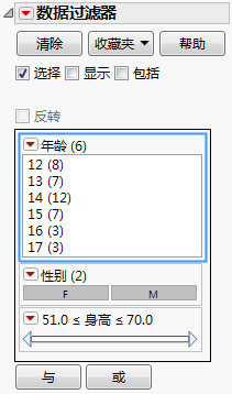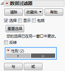 若修改已在数据过滤器中设置的行状态,随后在数据表中更改行状态或选择图形中的点,数据过滤器中的选择可能与数据表中的选择不符。数据过滤器包含一条警告消息:“您的选择已在另一窗口中更改”。出现重置选择按钮。点击重置选择按钮可改回数据表选择,以反映数据过滤器中的选择。