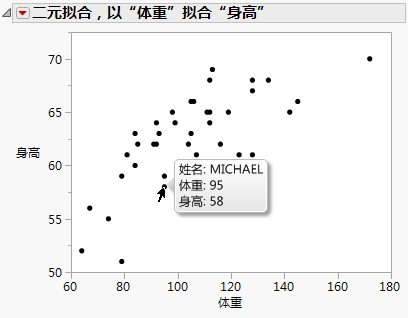 要选择图形中的点,请使用箭头光标点击该点。这将选择该点以及当前数据表中的相应行。要选择多个点,请在按住 Shift 键的同时选择这些点。将光标置于点上方时(点击或不点击)将出现点的标签。