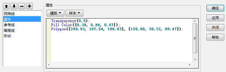 在某些图形中,您可以查看创建图形元素的 JSL。图 9.40显示了判别分析图的“组标签”脚本。该脚本定义组标签的标记和文本。无法修改或删除这些内置脚本中包含的命令。您可以从“模板”列表或“样本”列表中插入命令,但无法在窗口中点击和键入新命令。