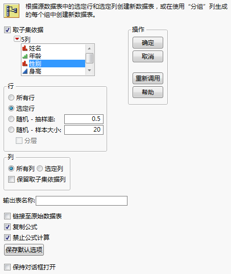 选择表 > 子集。