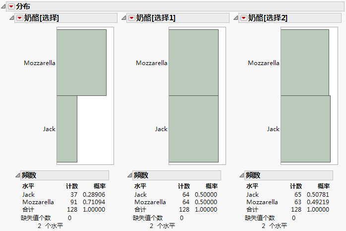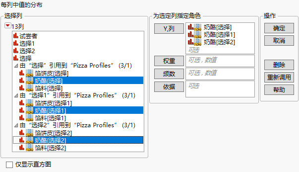 在 Pizza Responses.jmp 中,选择以“选择”开头的三列。