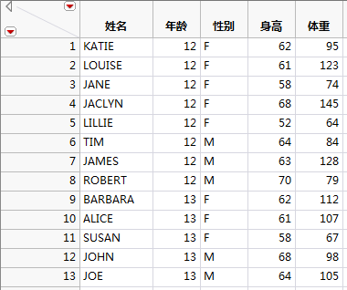 Big Class.jmp 表包含原始数据,New Heights.jmp 表包含更新数据。