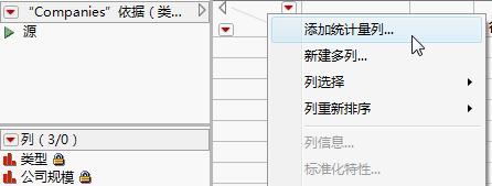 从数据表网格左上角的红色小三角菜单中,选择添加统计量列。