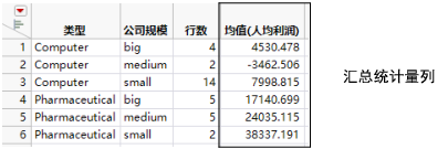 包含汇总统计量列的汇总表的示例