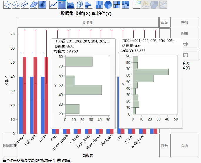 1. 在图形中,右击并选择悬停标签 > 直方图。