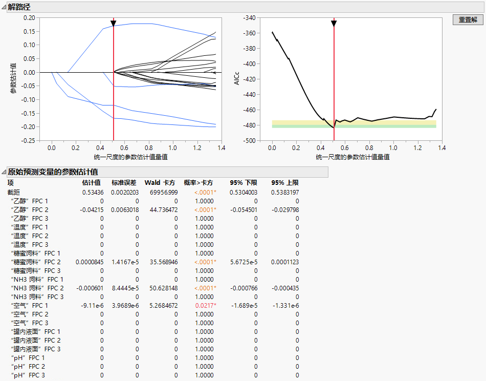 使用“拟合模型”平台的“广义回归”特质确定函数过程变量是如何影响产量的。