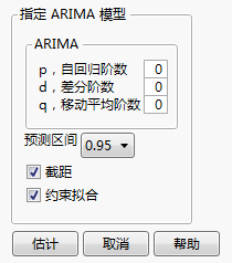 若选中,拟合过程将约束自回归参数以始终将其限定在稳定区域内,并将移动平均参数限定在可逆区域内。