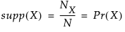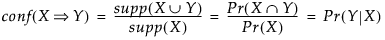 在这种情况下,支持度相当于交易同时包含项集 X 和 Y 的概率。