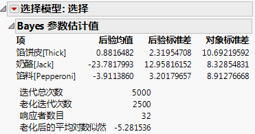 提示:选择红色小三角选项“保存 Bayes 链”,查看每次迭代的单个估计值。