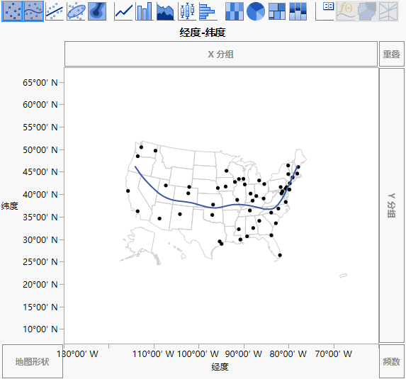 美国地图随即显示在图形上。