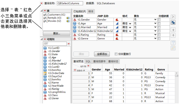 注意:“查询生成器”示例基于的数据库并未随 JMP 安装。