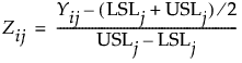 若没有为第 j 列指定目标,能力箱线图将基于变换观测的以下值:
