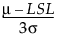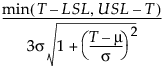注意:使用默认的 AIAG (Ppk) 标签时,基于“总 Sigma”的指标表示为 Pp、Ppl、Ppu 和 Ppk。若使用“总 Sigma”,指标 Cpm 的标签不变。本节中的公式使用 Cp 标签定义。