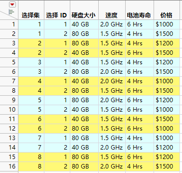 选择(或离散选择)实验提供用于对离散偏好建模的数据。研究参与者可从具有不同特性的多组可能产品(或产品特征)中进行选择。参与者从每组特征中都选择一个偏好特征。例如,在设计高端笔记本电脑时,电脑公司可能关注关键功能的相对重要性,如:处理器速度、硬盘大小、屏幕大小、电池寿命和价格。选择实验可将这些功能的相对价值传达给客户,并指出各产品功能在权衡利弊后的最佳取舍。