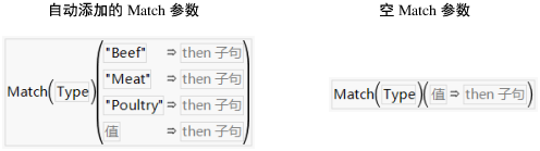 在自动填充的参数中,您应突出显示 then 子句,然后输入表达式。在空参数中,您突出显示 expr、value 或 then 子句,然后输入表达式。(或者,若您突出显示一个表达式,然后点击 Match,则“公式编辑器”创建新的 Match 条件,其中原始突出显示的表达式作为 expr 且不为 value 和 else 子句赋值。)另外,请记住:
