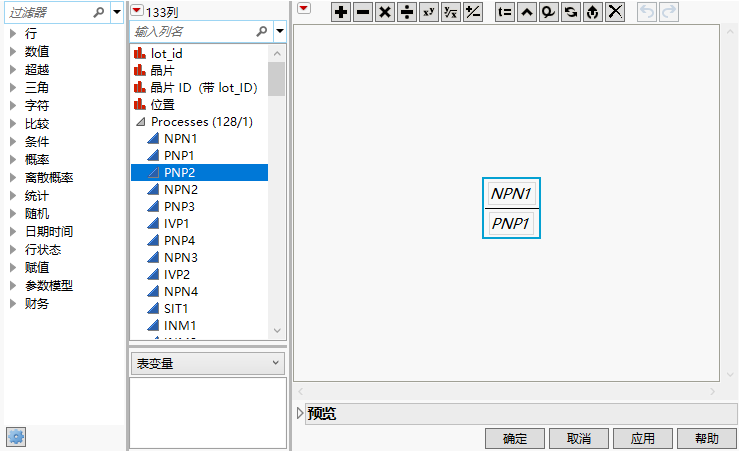 注意:在本例中,我们想要同时更改 NPN1 和 PNP1。您可以取消选择您不想在后续公式中更改的列。