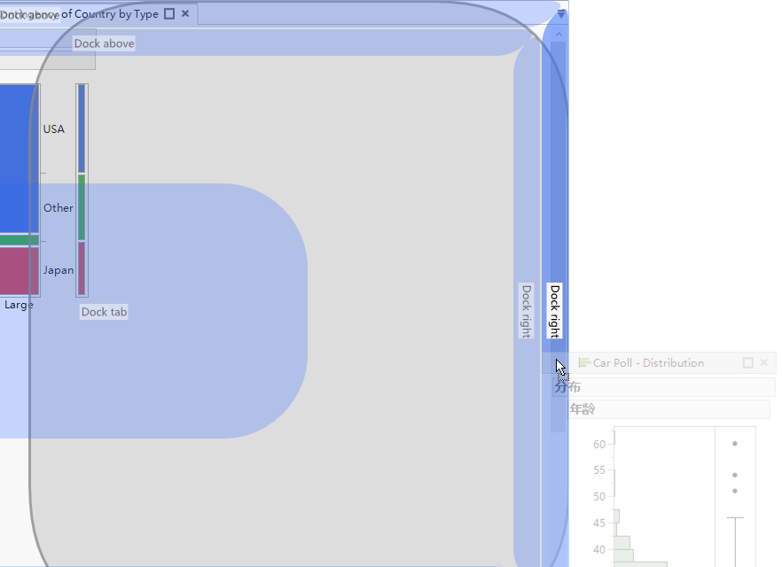 3. 将“分布”报表选项卡拖到右侧,直到最右侧显示停放右侧区。