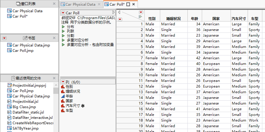 3. 按 Ctrl 键并点击 Car Physical Data.jmp 和 Car Poll.jmp。