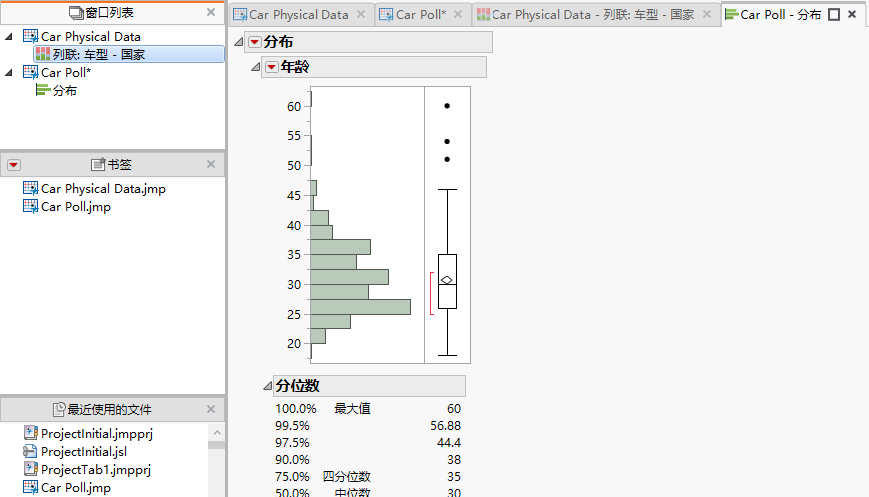 5. 选择文件 > 保存项目,将文件保存为 Cars.jmpprj。
