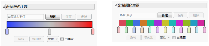 “定制颜色主题”面板 同时显示了分别适用于连续主题和分类主题的颜色主题面板。