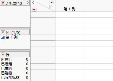 1. 选择文件 > 新建 > 数据表。这将显示一个空数据表,不包含任何行,只有一个标记为第 1 列的数值列。