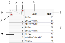 3 | 红色小三角显示列菜单。直方图显示位于列标题行中的直方图。 |