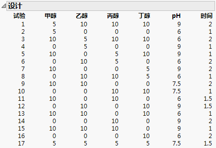 注意:您设计中的试验次数的显示顺序可能不同于萃取过程的确定性筛选设计 中显示的顺序。