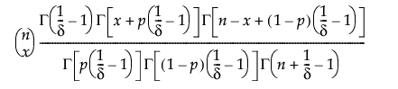 若 δ 的估计值为 0,则该公式无效。在这种情况下,beta 二项分布简化为 Binomial(n,p) 分布,而且