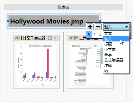 编辑仪表板时,您可以设置文本框中文本的格式。将文本框拖至仪表板并点击文本框中央。格式设置选项随即显示。