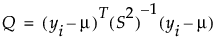 在该等式中,yi = 第 i 个观测的响应,μ = 均值向量的当前估计值,S2 = 协方差矩阵的当前估计值,T = 转置矩阵运算。最后一步是减小方差矩阵的偏倚。