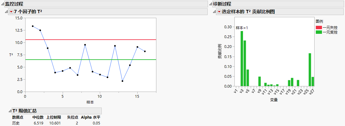 4. 选择分析 > 质量和过程 > 模型驱动的多元控制图。