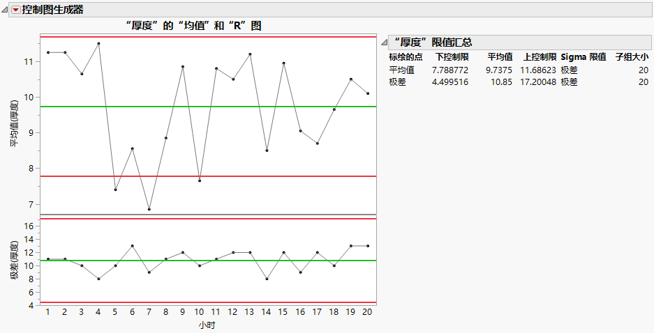 使用交互式“控制图生成器”工作区可调查数据中的变异以及过程是否受控。
