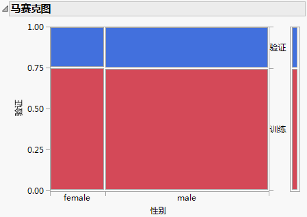 验证列将添加至数据表。您可以通过创建马赛克图来探索验证集和训练集的分布。