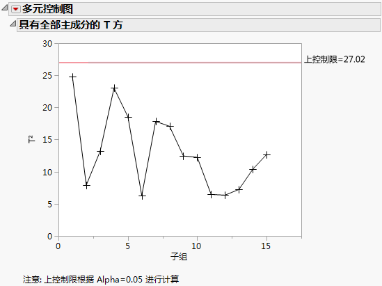 8. 点击“多元控制图”旁边的红色小三角并选择显示均值。