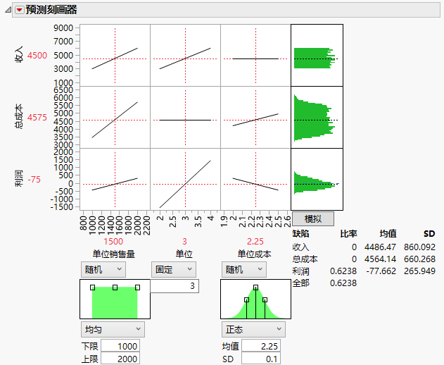 看起来这些模型不太可能盈利。通过对利润设置为零的下规格限,缺陷报表显示不盈利的概率为 62%。