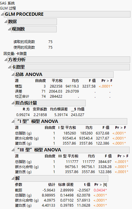 JMP 报表格式的 SAS 结果