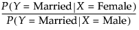 1. 检查“相对风险”报表中的第一个条目,即 P(Married|Female)/P(Married|Male)。