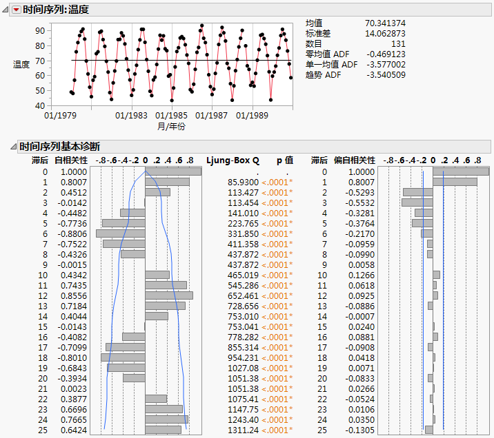 Raleigh Temps.jmp 的时间序列分析报表