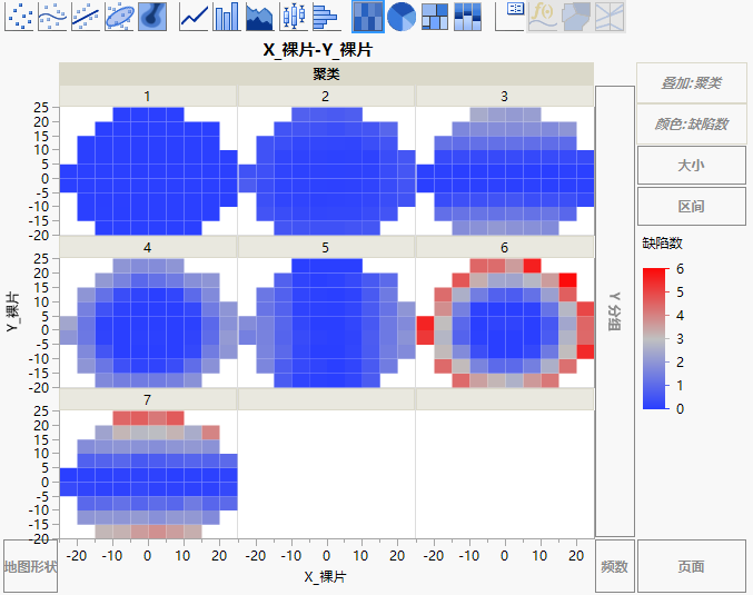 这些图显示缺陷的各种模式。请注意这些相同的图也显示在“层次聚类”报表的“聚类汇总”分级显示项中。