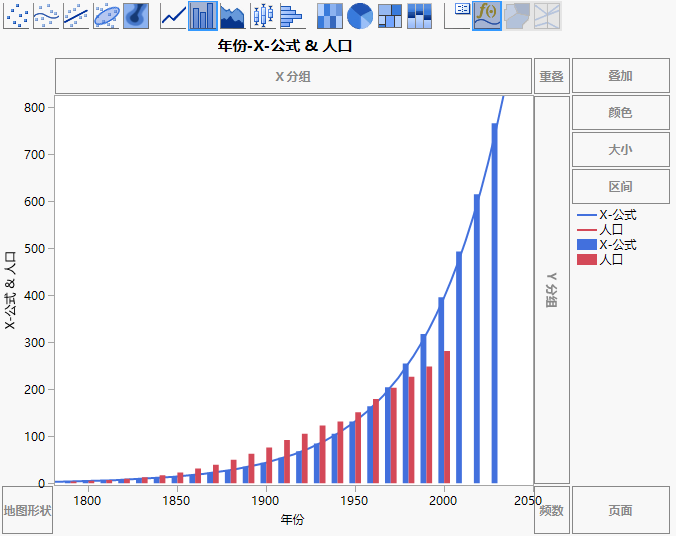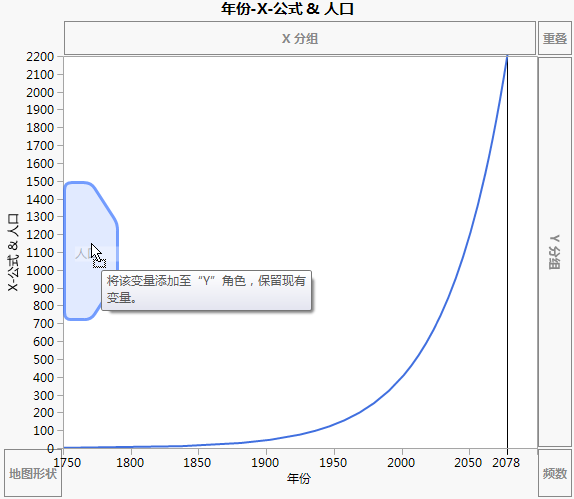 16. 将人口恰好拖到 Y 轴内,以将它与 Y 区域中的 X-公式合并。