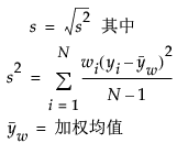 样本标准差,它针对非缺失值计算,使用指定的权重变量来计算。它是样本方差的平方根。计算公式如下: