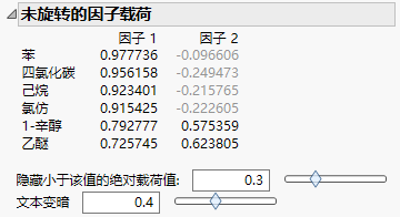 注意:“未旋转的因子载荷”矩阵经过排序,因此与同一因子关联的变量会显示在彼此上下。
