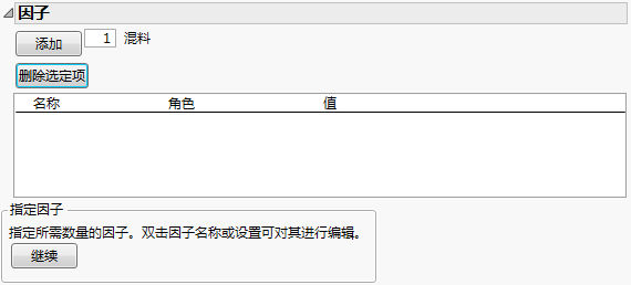 因子的实验设置。要插入值,点击默认值并输入所需值。