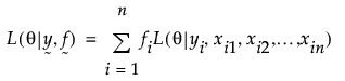 频数(包括具有非整数值的那些频数)对分析的影响由它们对损失函数的影响来解释。假定您要使用响应值 yi 和预测变量 xi1, xi2,..., xin 来估计参数 θ。假定损失函数(没有频数变量)满足以下方程: