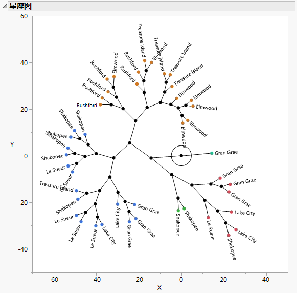 “层次聚类”依次组合聚类。该方法首先将每个观测视为一个聚类。然后逐步将距离上最相近的两个聚类合并成一个聚类。结果被描绘成一棵树,称为系统树图。