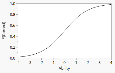 正确回答某个项目的概率与能力之间的典型关系是一个具有下渐近线和上渐近线的 S 形函数。随着响应者能力的增加,其正确回答该项目的概率将增至 100%。特定项目的曲线形状与该项目的难度和分辨力属性相关。